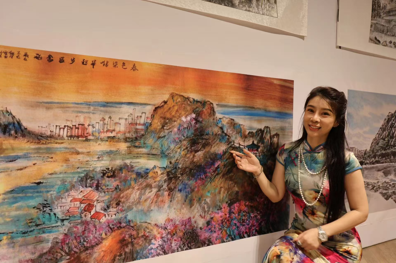 展览现场除展出中新艺术家联手创作的《鹊华春色图》之外,还呈现了多幅展现济南自然风光与发展新貌的书画摄影作品。两国艺术家以笔墨和色彩为媒介,将济南的山水灵韵与起步区的蓬勃朝气完美融合。
